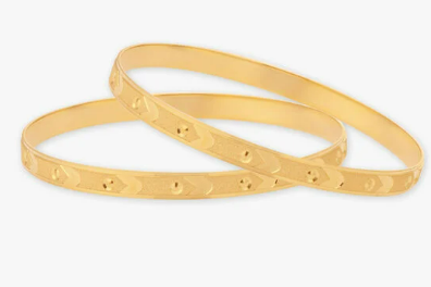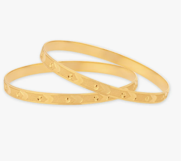 Add a touch of elegance with this set of 2 Bangles crafted in 22 Karat yellow gold Bangles, showcasing a mix of circular and arrow mark designs.
