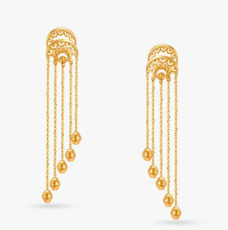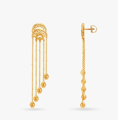 Gorgeous 22 karat gold jali work long drop earrings, perfect to style with any outfit!