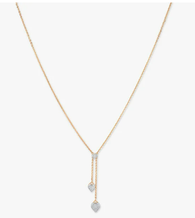 Make your evenings memorable with this natural diamond Necklace, a lariat silhouette adorned with twin diamond drops radiating timeless sparkle.